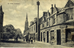 Ayr Road is one of the main roads through the town and means literally the road to Ayr (the county town). Ayr Road leads off Glaisnock Street and was opened in the late 18th century, and in the early period there was a toll on the corner of Ayr Road and Glaisnock Street. Tolls were levied on goods and passengers coming into Cumnock.
